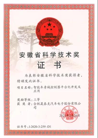 會議為上一年度全省在科技進(jìn)步方面做出突出貢獻(xiàn)的企業(yè)和個人頒發(fā)了榮譽(yù)證書。我司的《智能車身域控制器平臺化開發(fā)及應(yīng)用項目》榮獲省科技進(jìn)步三等獎。